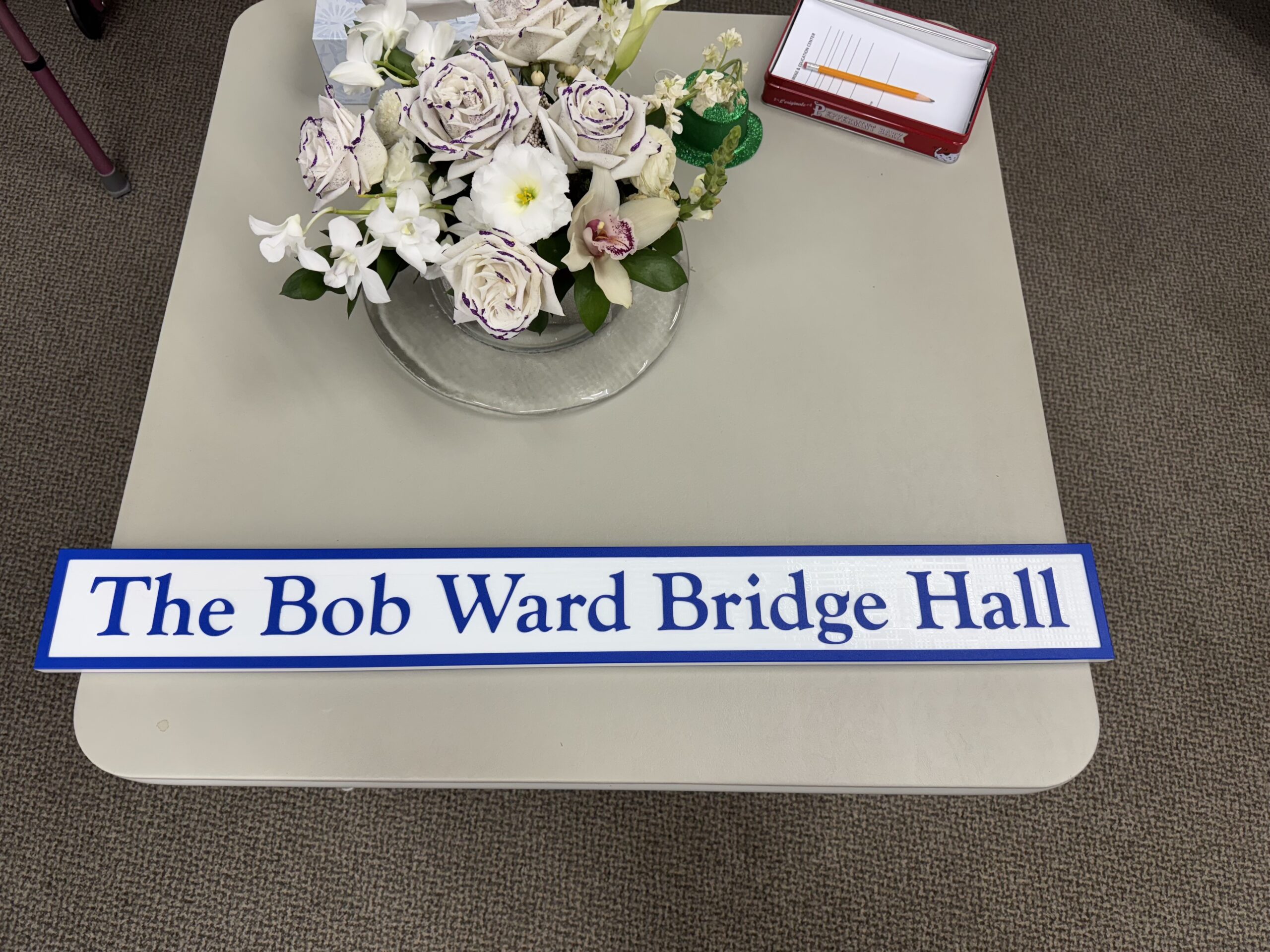 Bob has contributed greatly to the Center with his years of membership, his contributions, and many hands-on hours of improving club facilities. The membership therefore elected to honor him by re-naming the main playing area at the Bridge Center to become the Bob Ward Bridge Hall. Founding director Harry Falk and the Khatib Center Board oversaw this tribute, with club founder Dr. Reza Khatib also attending.